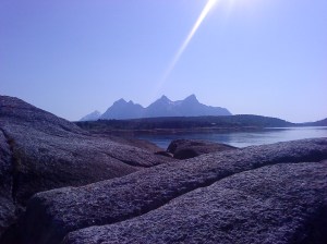 Jeg hadde tidligere på dagen fått utdelt en sykkel til låns for hele sommeren. Den er blå og har kurv. Så da kunne jeg ikke annet enn å sette meg på den og trø sørover. Når jeg sier “kunne ikke” mener jeg det bokstavelig, det er nemlig kun én vei til/fra Tranøy. Etter 20 minutter sykling fant jeg et nydelig sted hvor jeg slo meg ned med store ambisjoner om å lese fransk. Men stedets idylliske vakkerhet og alt det der gjorde at jeg ble sittende og bare ha det herlig. Bildet viser utsikten jeg hadde over fjorden, men slikt må bare oppleves.
