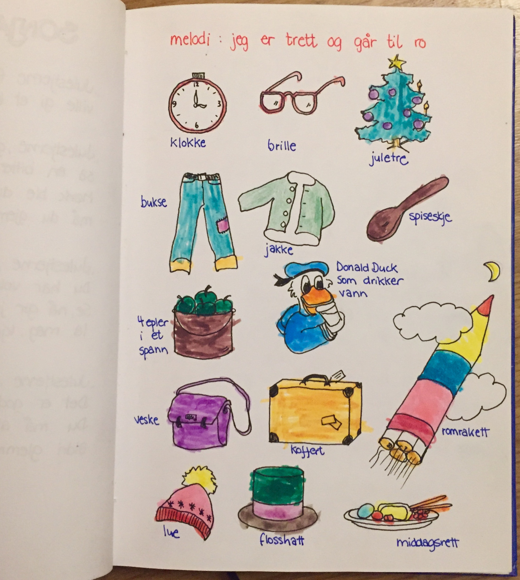 Da jeg var syv fikk jeg en sangbok av mamma. Hele boken var håndskrevet (med Kaptein Snabeltanns håndskrift) og inneholdt de rareste sanger. Hver kveld insisterte jeg på at vi skulle synge alle seks versene av “I bakvendtland”. Det er et mirkakel at jeg ikke ble satt ut i skogen.