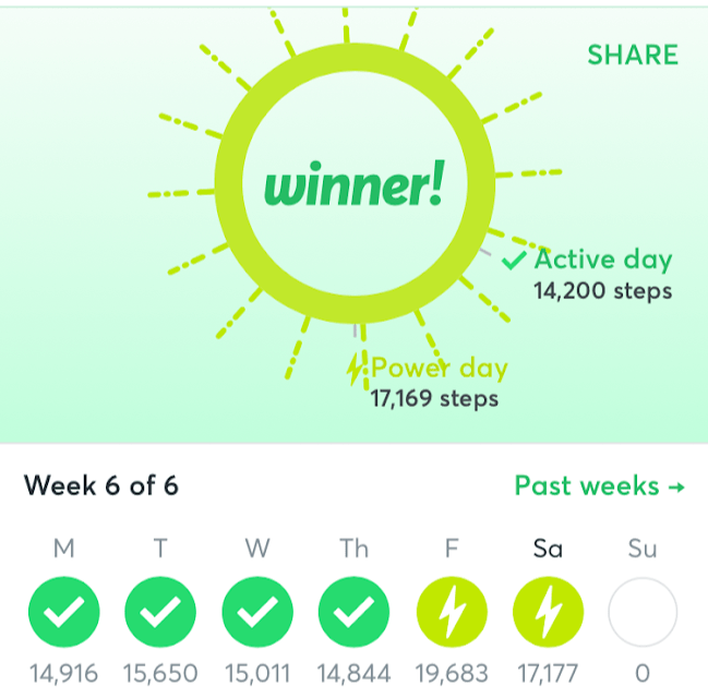 Jeg sitter igjen med minnet om 709.940 skritt og et intenst hat mot å gå. Og selvfølgelig premien min: Etter at Vi-Er-Her-For-Å-Gjøre-Livet Ditt-Bedre-appen tok sine 15% og PayPal skrellet av et gebyr for å konvertere fra Dollar til kontoen min, vant jeg…